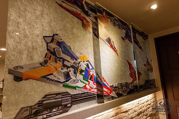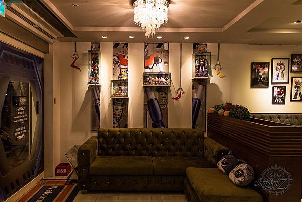 ▼進門後的沙發等待區牆面為此次裝潢的玩具展示重點,魔神三兄弟在此恭候大駕